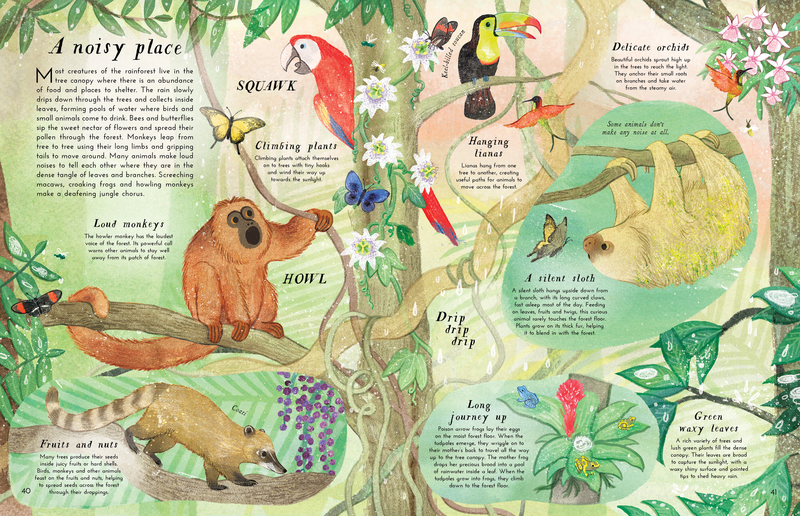 Marvel at the peaceful twilight of the deciduous forest, where birds gather twigs, bats shelter in tree trunks and the carpet of fallen leaves becomes small creatures' homes. Spot a bald eagle soaring high up in the winter sky through the towering green giants of the redwood forest. Discover all the noises in the Amazonian rainforest, where most creatures live in the tree canopy together, creating a symphony of sounds. Each forest has something special to offer and is invaluable.